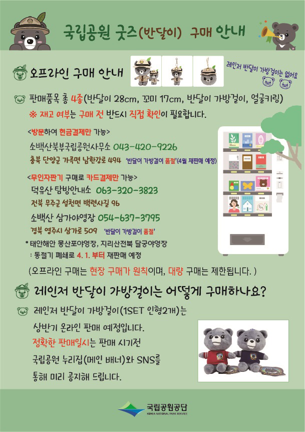 국립공원 굿즈 반달이 인기가 많다고 한다.