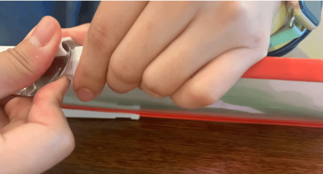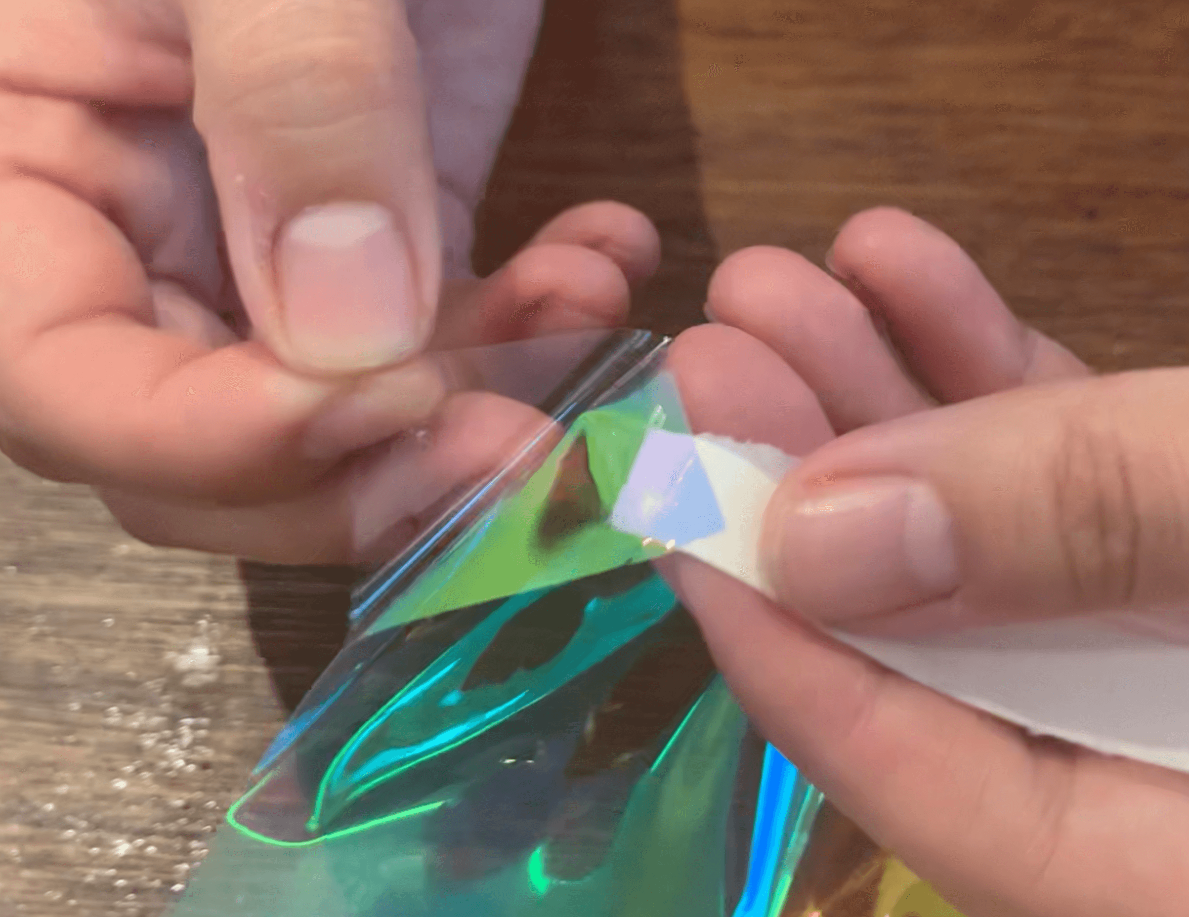 접착면에 붙어 있는 보호필름을 떼는 것이 어려운데, 테이프를 사용하면 편하다.