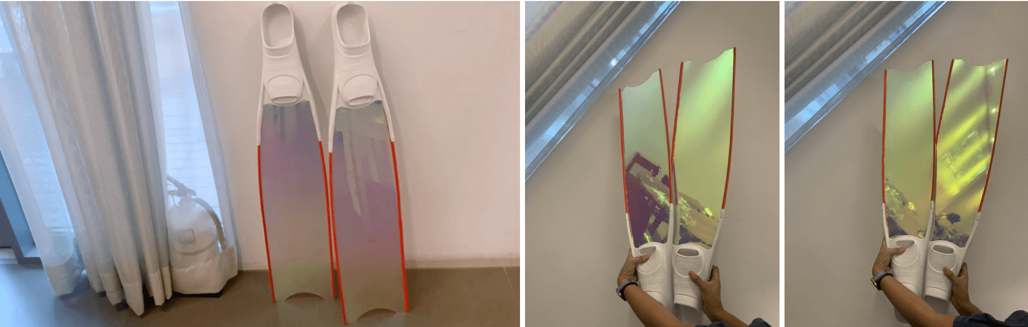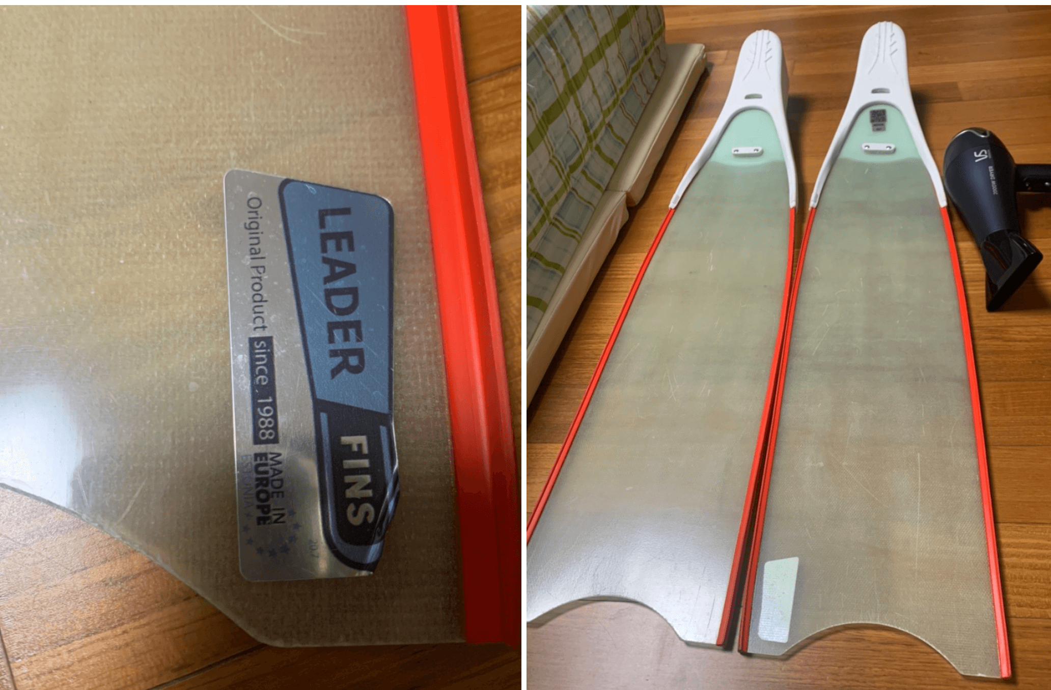 프리다이빙 리더핀 아이스핀은 필름 시트를 붙여서 튜닝을 많이 한다.