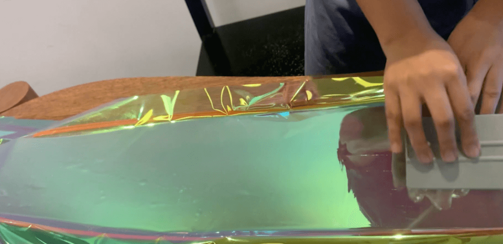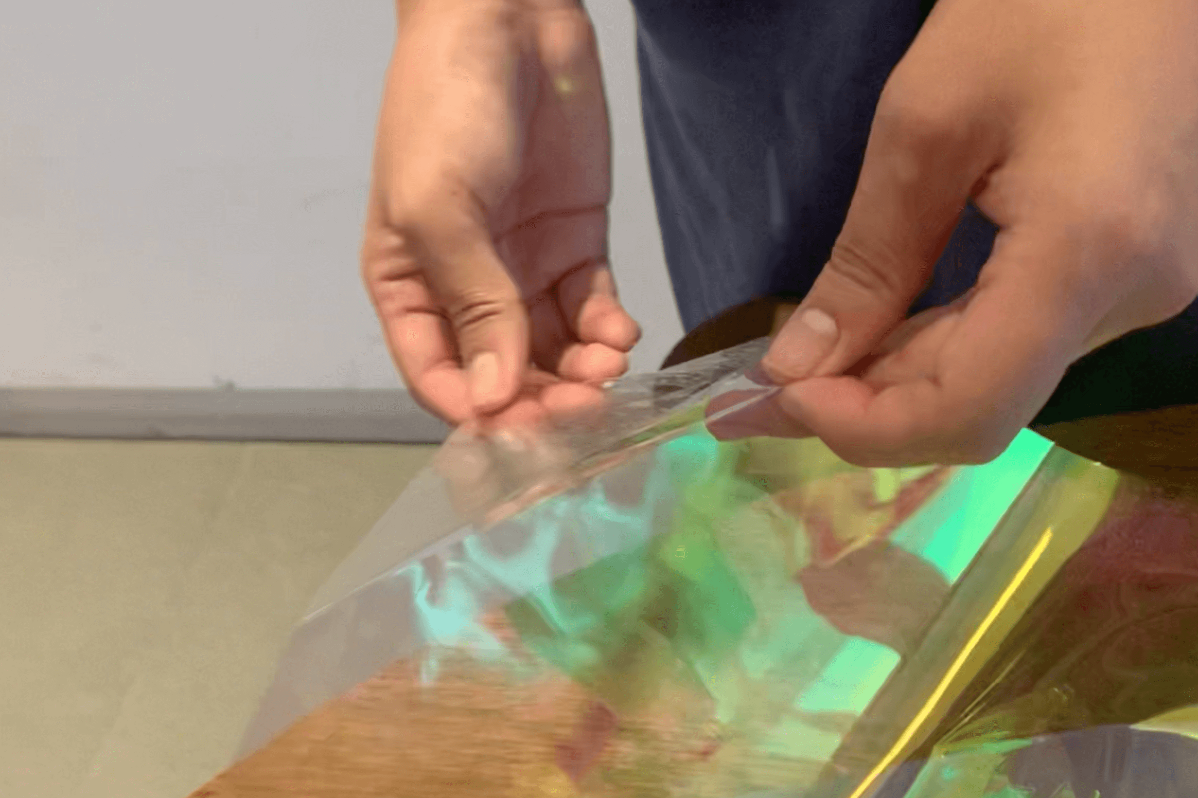 오로라필름에 기스가 안나게 공기를 빼려면 문지러줘야한다.