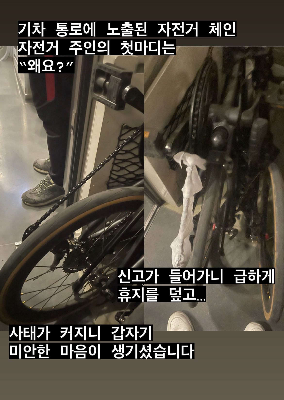 자전거 주인은 미안한 마음이 조금도 없으셨는데, 신고가 들어가니 갑자기 미안한 마음이 들었다고 합니다.