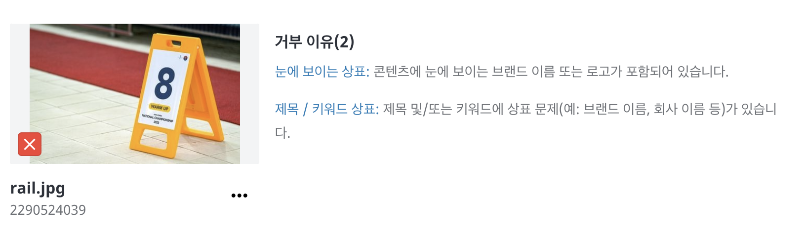톤 보정을 하고, 문제의 브랜드 명칭도 삭제 해서 결국 승인을 받았다.