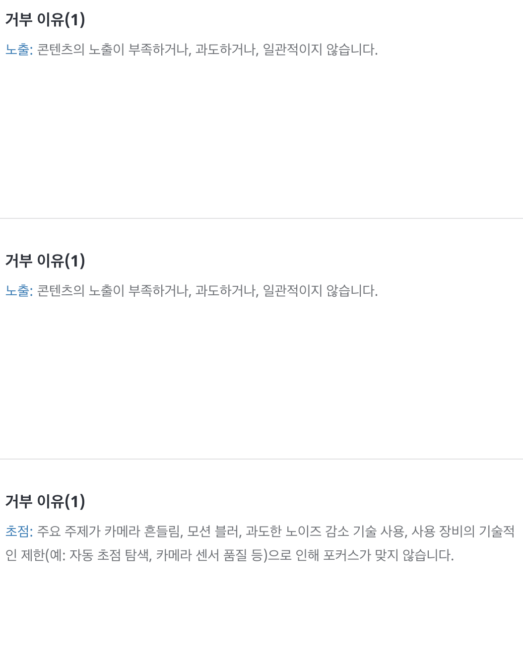1. 보정이 안된 것들은 노출부족, 과도로 거절이 된다.